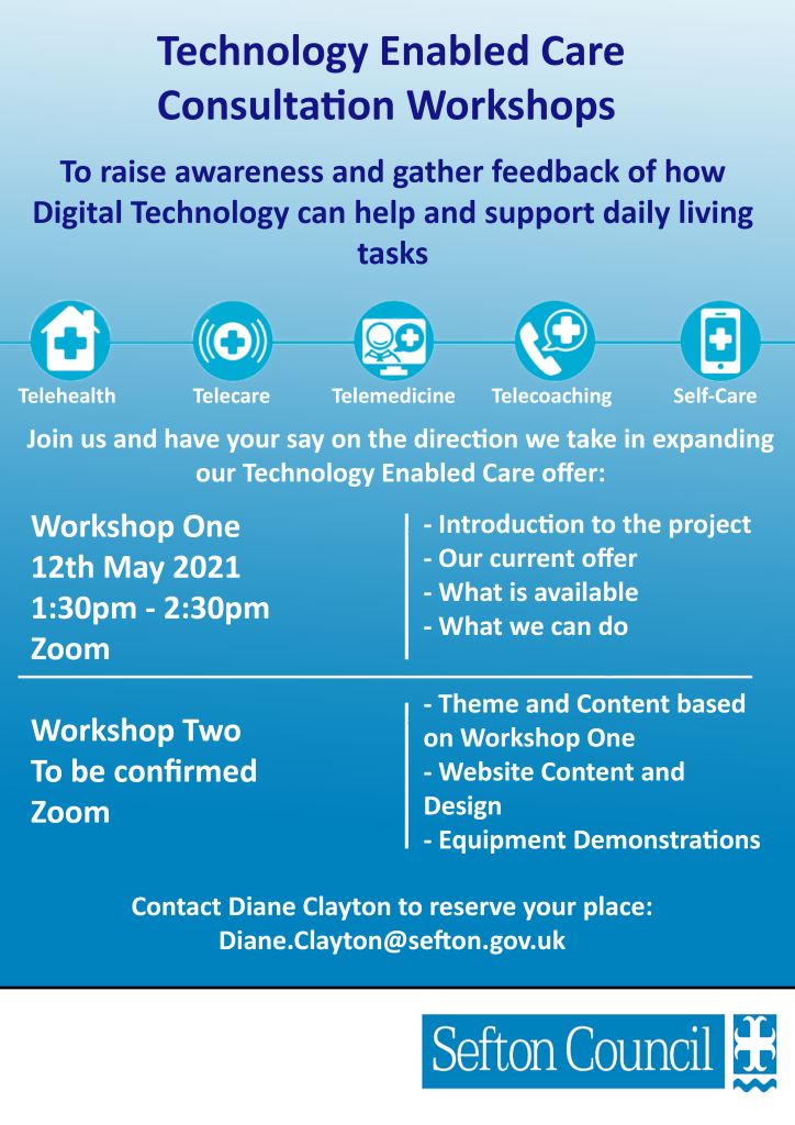 Sefton Council’s Adult Social Care team have planned Technology Enabled Care (TEC) consultation workshops specifically for Sefton residents.