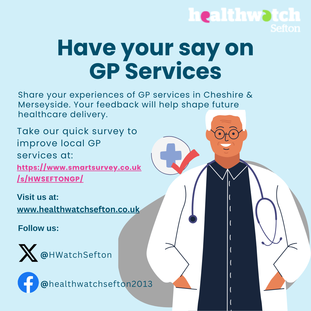 The survey will remain open over winter. The results and recommendations will be published on local Healthwatch websites and shared with Cheshire & Merseyside Integrated Care Board (ICB) and local partners across Sefton.