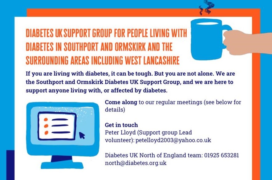 The Diabetes UK support group for Southport and Ormskirk invite you to attend their regular meetings held on the first Monday of the month at 7pm at The Richmond Hotel, 234 Scarisbrick Road, Southport, PR8 5HL.