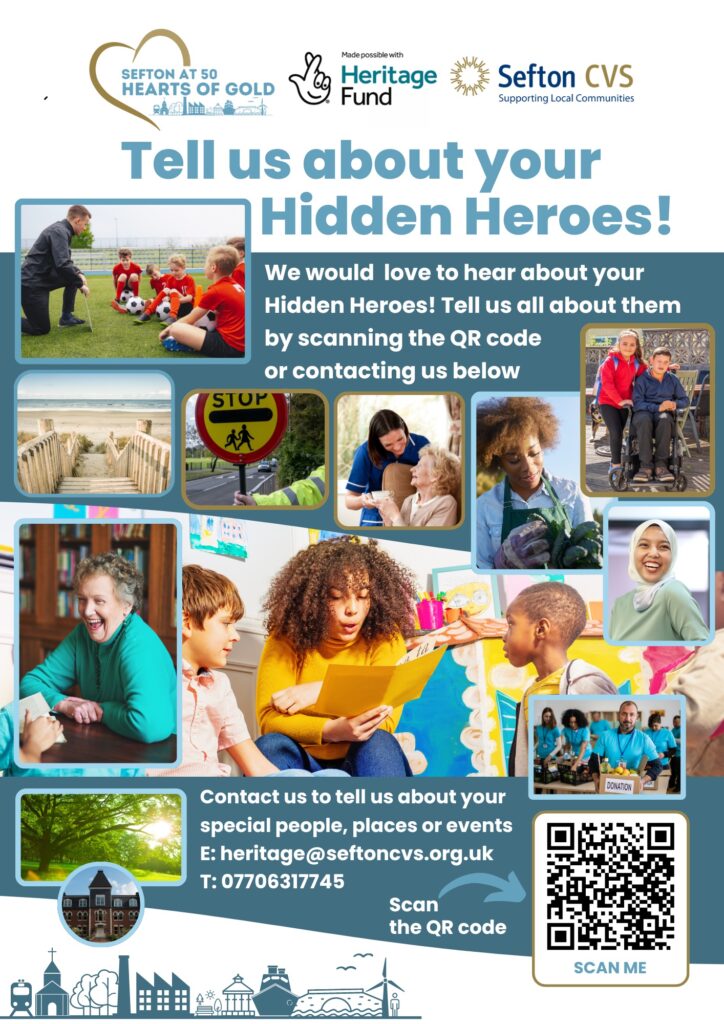 As part of Sefton CVS’s Hearts of Gold Heritage Lottery Project we would love you to tell us all about your Hidden Heroes from the last 50 years in Sefton. We want to celebrate the amazing people, places and events that make Sefton such a vibrant, talented and diverse place to live.