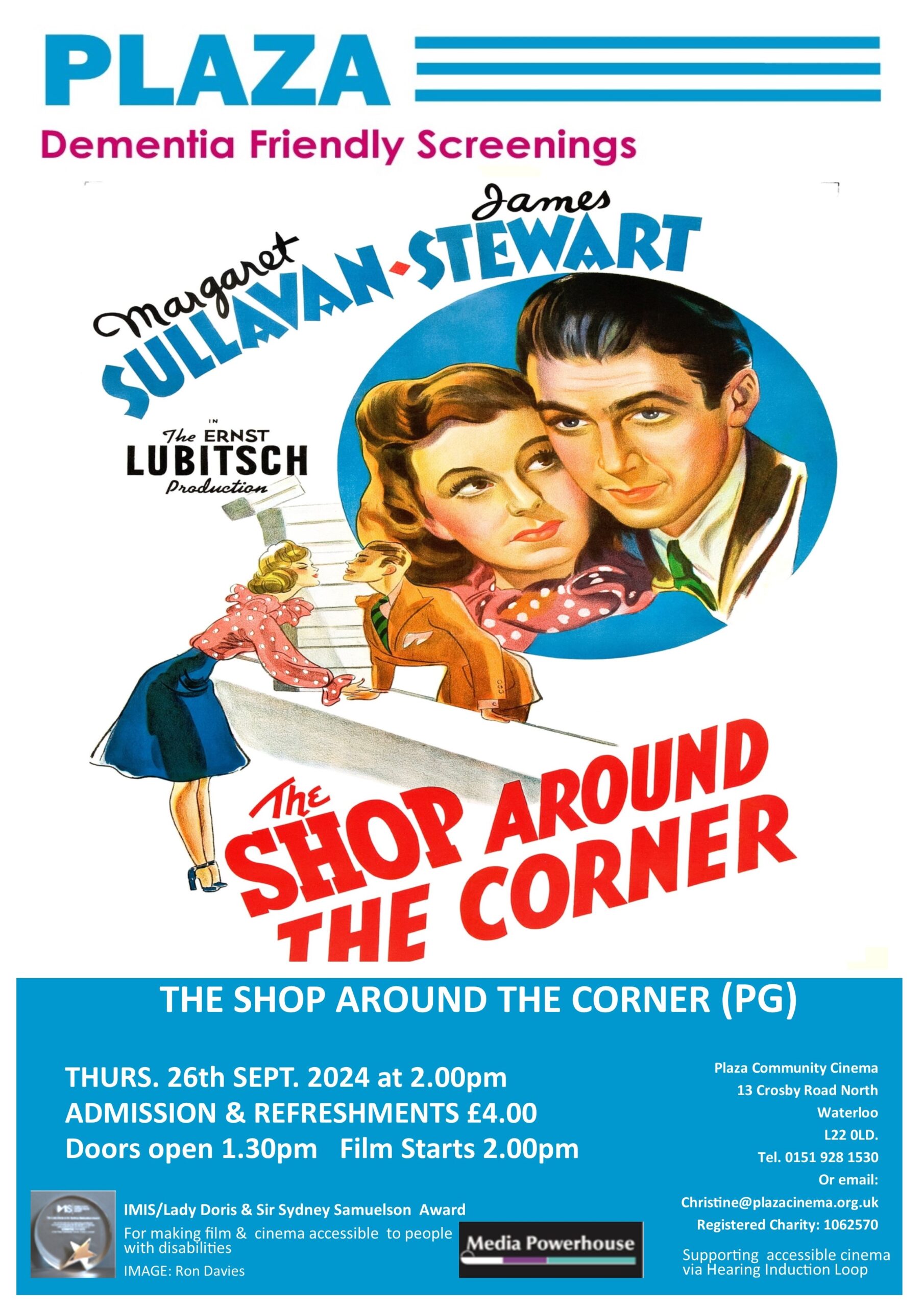 ‘The Shop around the Corner’ is next Dementia Friendly Screening at the Plaza on 24th October